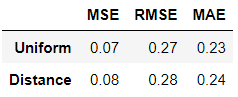 > uniform을 사용한 모델과 distance를 사용한 모델 사이에 prediction에서 차이가 있음을 확인할 수 있다.