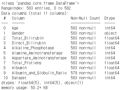 > 종속변수는 Dataset변수이고, 독립변수는 종속변수를 제외한 나머지 변수이다.