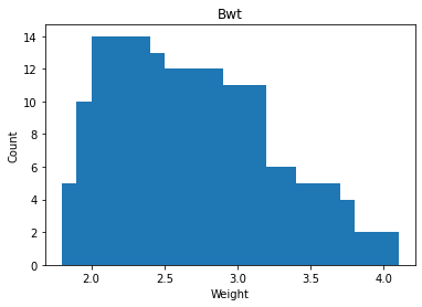 > 다음은 데이터셋에서 Bwt컬럼으로 정규성 검정을 샤피로-윌크 검정으로 실시한다