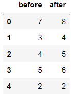 > before 변수는 유의확률(pvalue)이 약 0.83으로 유의수준(0.05)보다 크므로 귀무가설을 채택한다.
