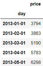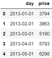 > 시계열 분해를 위한 arima_data를 불러오면서 day변수와 price변수만을 가져온다.