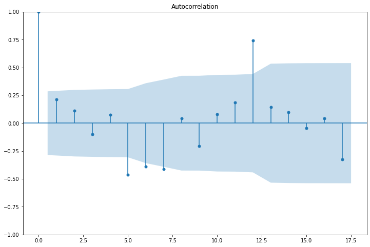 > 위 그래프는 ACF값을 확인해보기 위해 데이터를 시각화한 것이다.