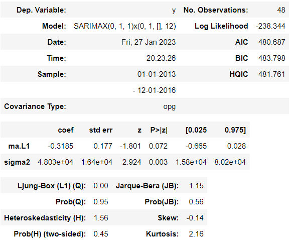 Best model: ARIMA(0,1,1)(0,1,0)[12]