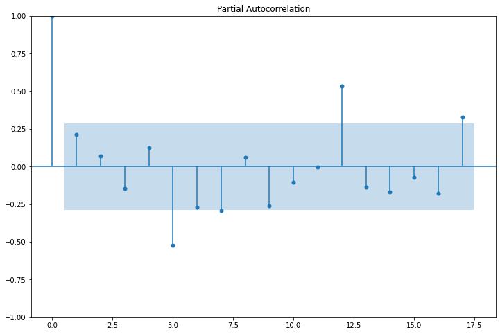 > 위 그래프는 PACF값을 확인해 보기 위해 데이터를 시각화한 것이다.