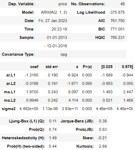 > 결과에서 AIC값과 AR, MA모델의 pvalue를 보는 것이 중요하다고 한다.