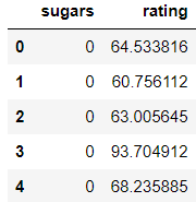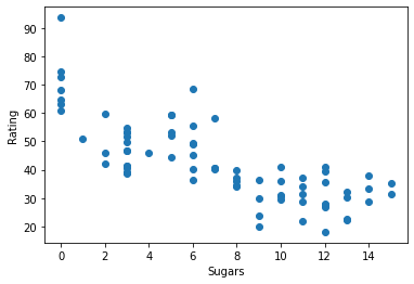 > 독립변수인 sugar(설탕 함유량) 변수와 종속변수인 rating(영양 등급 평가) 변수를 data라는 데이터프레임에 따로 할당해 준다.