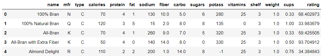 다항 회귀에 대한 실습은 cereal데이터를 활용해서 구현하고자 한다.