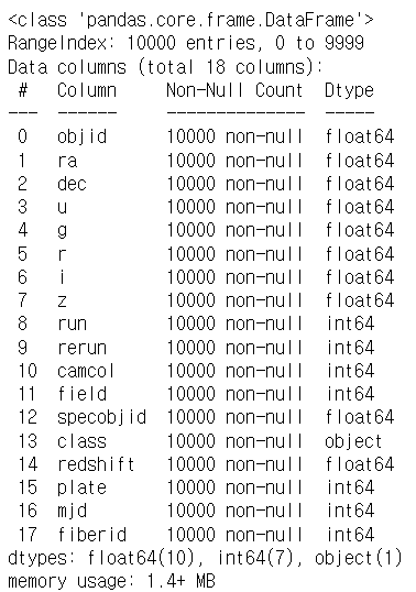 > 불러온 데이터셋의 간략한 정보를 확인하기 위해 info()를 사용한다.